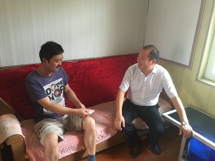 7月28日,投資公司總經理李國文一行帶著慰問金,來到日曬制鹽公司患病職工孫榮成的家里,為他送去公司黨委的關愛和溫暖,鼓勵他樹立戰勝病魔的信心和勇氣。