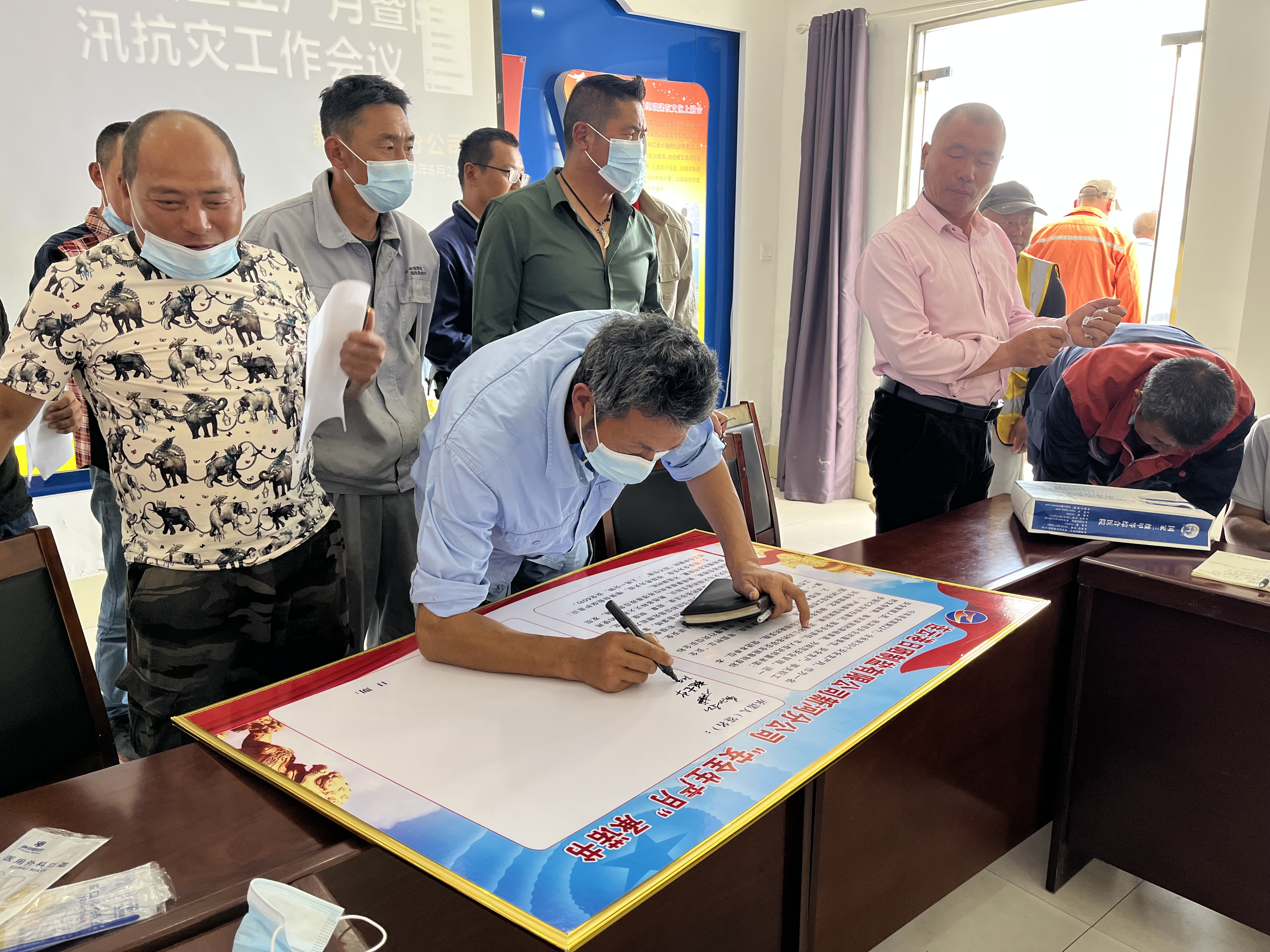 分公司經理程龍按照會議的要求對我公司的安全生產及防汛工作作出了進一步的安排部署,要求分公司全體人員手機在汛期做到24小時保持暢通,各班組對灘內的抗災工程抓緊落實。特別是灘內的排淡溝道、塑池全封閉、、軟稟腳、泥包、泥袋、小馬凳等防風防雨措施要按期完成。后勤維護組抓緊完善用電設施、強排站等應急設備,確保汛期安全形勢穩定。會議最后,全體班組長一起遞交了防汛安全責任狀,簽訂了“安全生產月”承諾牌。(趙斯中)