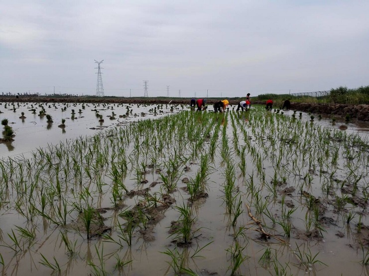 時下正值水稻插秧的大好時節。6月5日,實業公司組織人員四十余人,對農業分公司埒南片區的90畝稻田進行適時插秧。歷時3天,今日即可完成插秧任務。