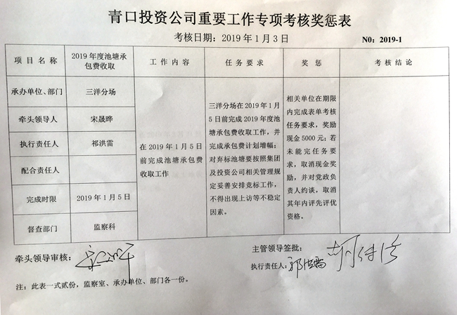 【表單考核】青口投資公司重要工作專項考核獎懲表