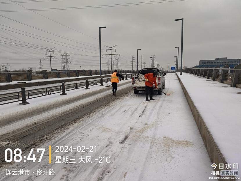 ? ? 同時,實施24小時統(tǒng)籌協調、多方調度,每小時收集匯總轄區(qū)道路積雪、結冰情況等,加強分析研判和信息上報,并加大路巡頻次,同時與兄弟單位做好聯勤聯動,對易結冰點、路段多舉措加大除雪力度,全力以赴確保轄區(qū)道路暢通。