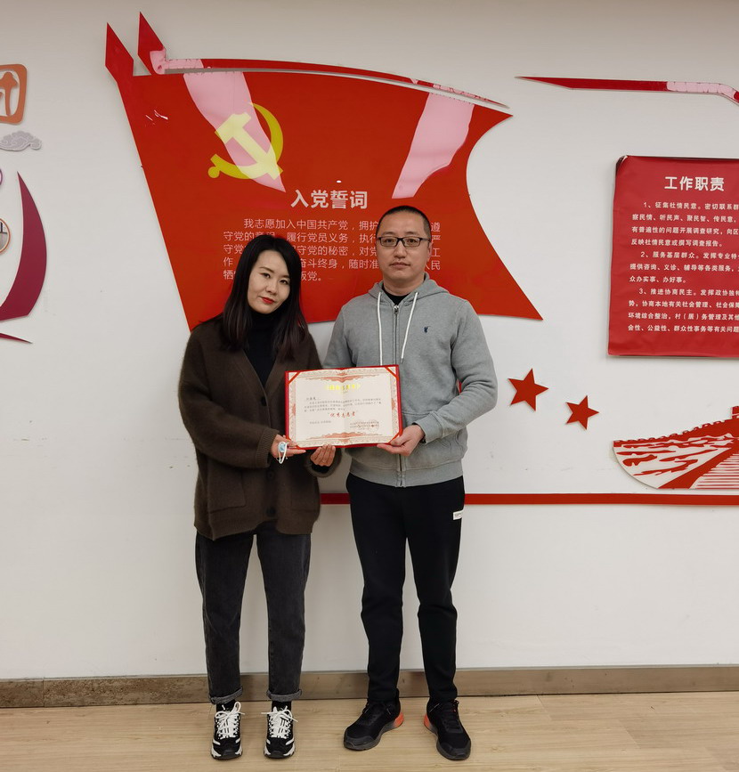 新東街道黨工委、新東街道辦事處聯(lián)合為榮譽(yù)獲得者頒發(fā)紀(jì)念證書,同時(shí)予以表揚(yáng),新東街道提到:市工投集團(tuán)臺(tái)北投資公司黨員江海凌同志最肯吃苦,最能戰(zhàn)斗。他每天早上到的比誰都早,晚上回的比誰都晚,與社區(qū)工作人員一道進(jìn)樓入戶排查信息,仔細(xì)詢問居民生活物品需求情況并予以解決,還認(rèn)真參與卡點(diǎn)防控值守、小區(qū)巡邏、做好小區(qū)出入人員體溫檢測、登記消殺出入車輛等一線工作。在疫情最后階段,大部分志愿者撤離,江海凌仍在“逆行”,成為小區(qū)居民物資保障志愿者,每天為廣大居民“菜籃子”保駕護(hù)航,江海凌是勇于擔(dān)當(dāng)?shù)哪嫘姓撸亲蠲乐驹刚摺?/strong>