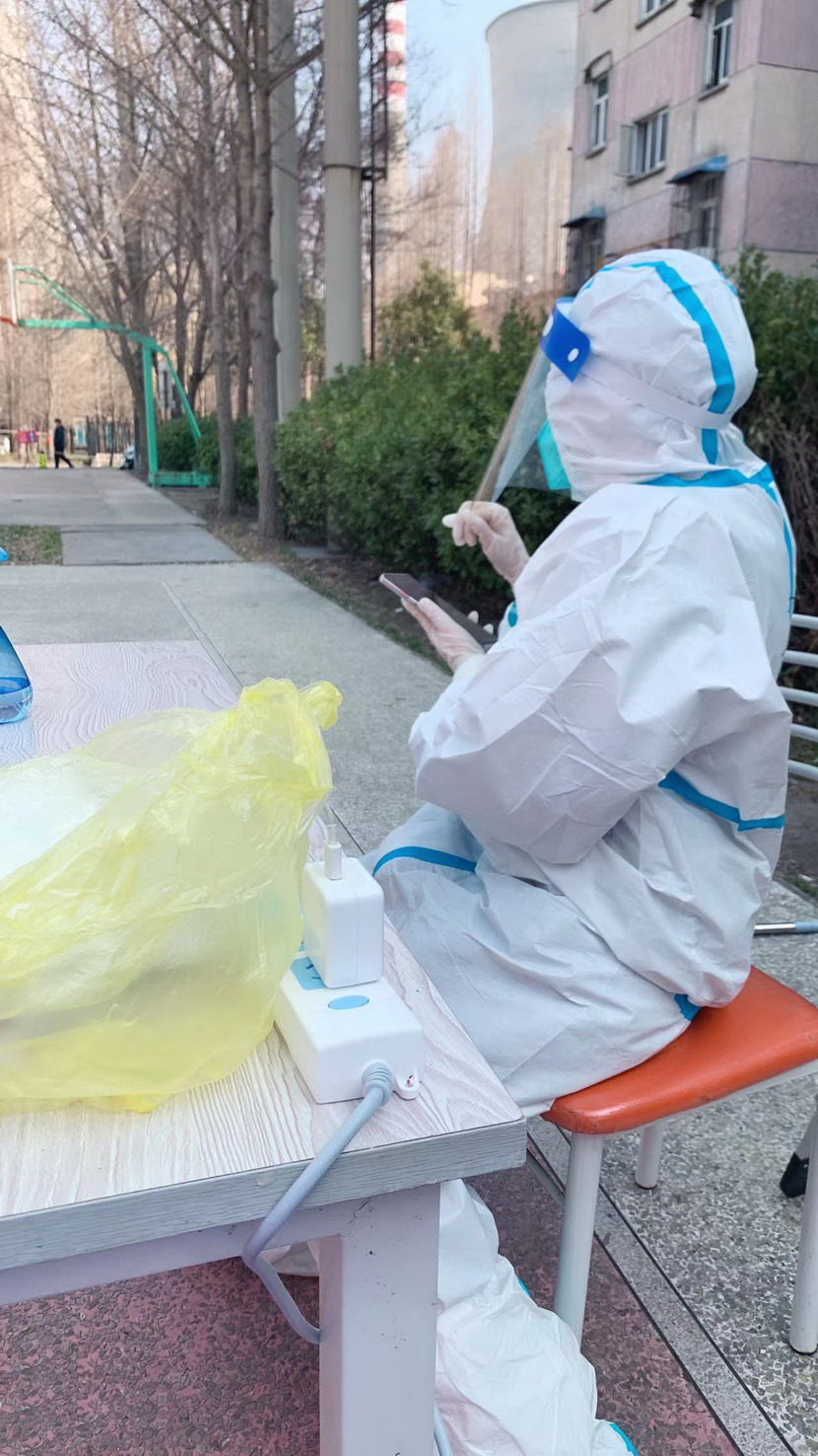 3月8日,臨時(shí)黨支部成立,黨員志愿者們隨即奔赴社區(qū)核酸檢測(cè)現(xiàn)場(chǎng)。當(dāng)天,志愿者們穿上防護(hù)服。“你好,請(qǐng)戴好口罩,出示健康碼。”“你好,這邊人比較少,請(qǐng)往這邊走,保持一米距離?!本S持現(xiàn)場(chǎng)秩序、檢查健康碼、登記核酸個(gè)人信息……志愿者們堅(jiān)守在各自責(zé)任區(qū),細(xì)心、耐心回答居民們的各類問題,忙得連喝水的時(shí)間都沒有。細(xì)致周到的服務(wù)、無私的奉獻(xiàn)精神,得到了社區(qū)居民們的一致認(rèn)可和贊揚(yáng)。