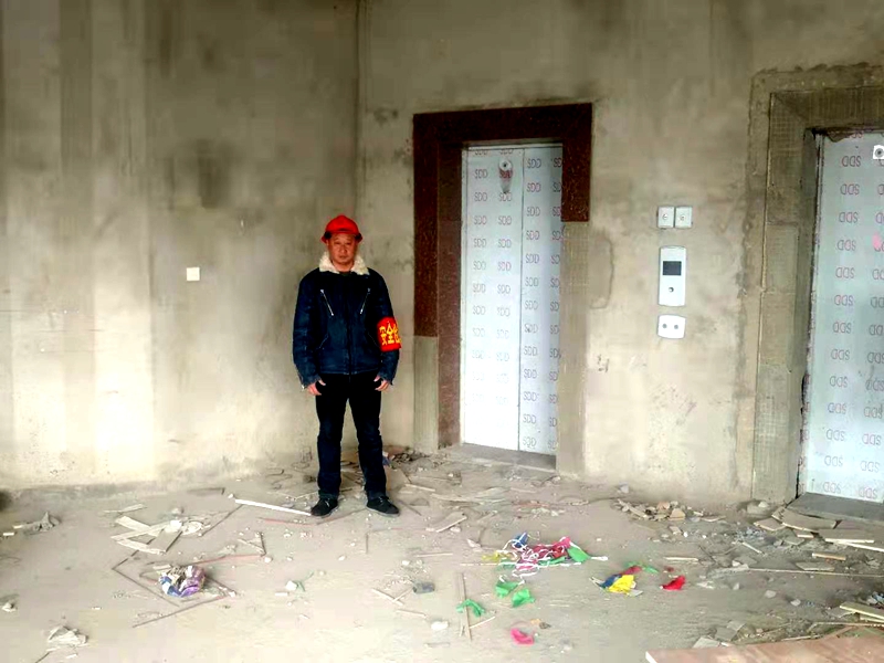 現場多次有人提出邀請王愛軍等兩位同志吃飯喝酒,都被他們嚴詞拒絕。帶著一塊面包,一根火腿腸,他倆像釘子一樣釘在電梯廳。“扯著雞毛當令箭”的風言冷語不停傳來,他們執(zhí)行任務的決心不動搖,輪流換班,也不讓電梯違規(guī)使用。保障二號樓安全施工,他們就是硬漢守門員。